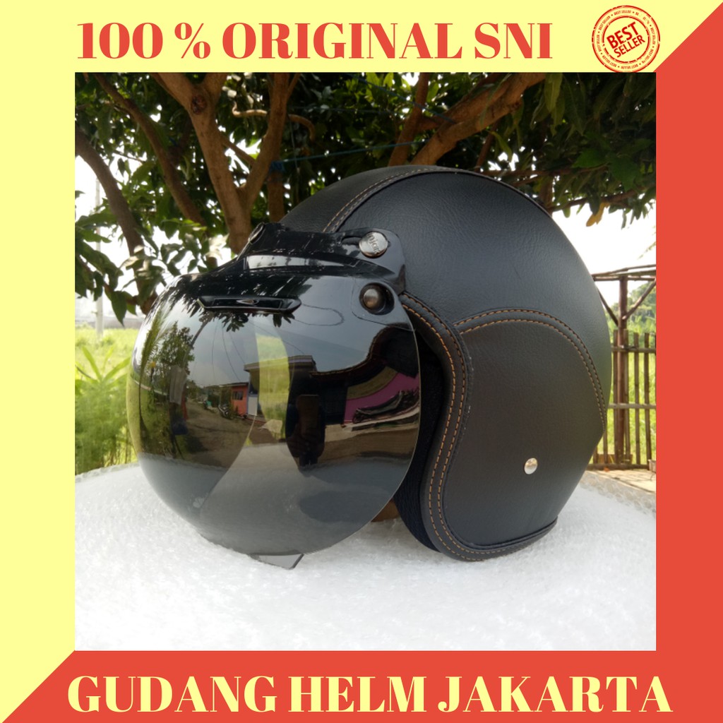Cod Bayar Ditempat Helm Bogo Dewasa Full Kulit Retro Klasik Sni
