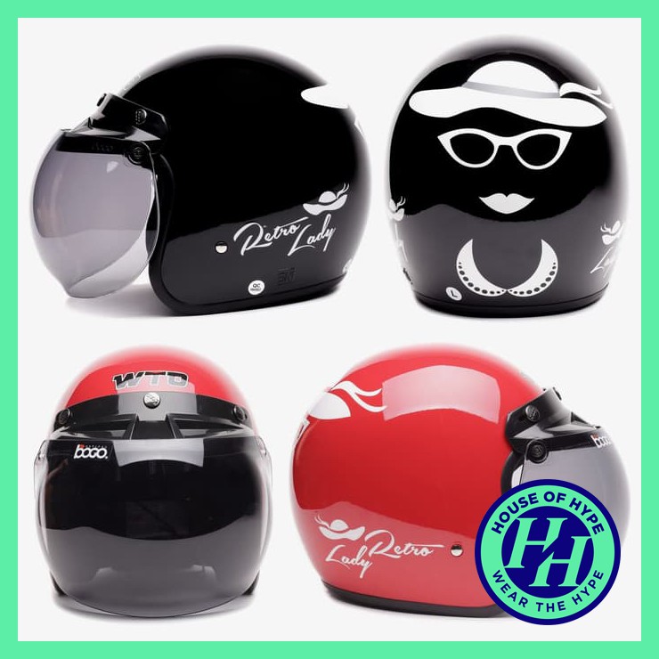 Helm Motor Dewasa Wto Helmet Retro Bogo Lady Glossy Helm Bogo