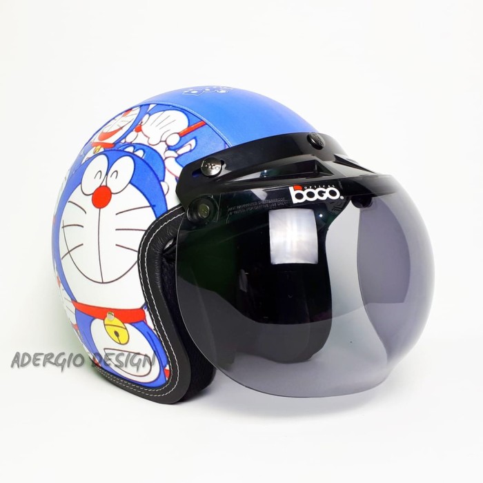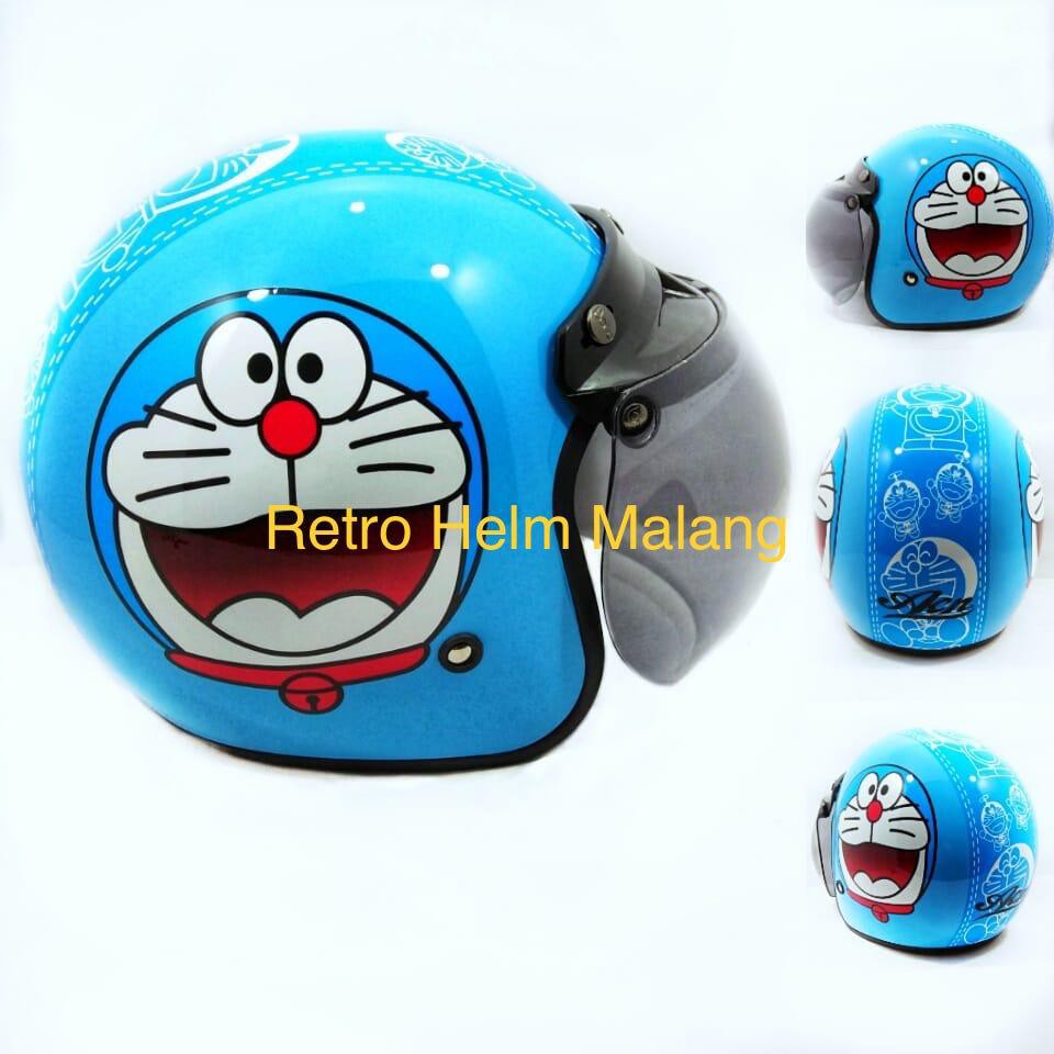 Helm Retro Doraemon Biru Dewasa Kaca Bogo Shopee Indonesia