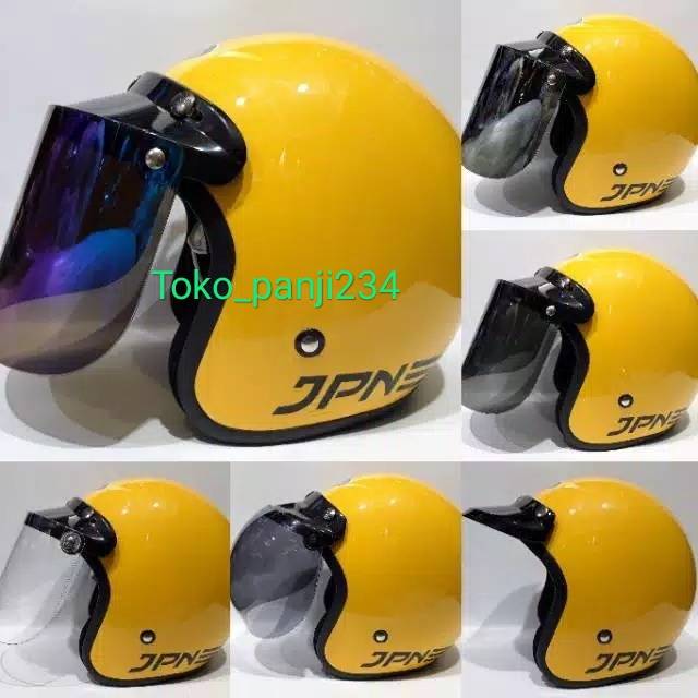 Helm Jpn Bogo Retro Arc Kuning Glossy Kaca Datar Flat Visor