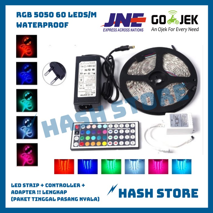 Bayar Ditempat Lampu Led Strip Ip44 Rgb 5050 Warna Warni Komplit