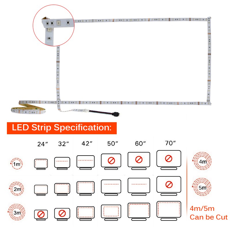 Rgb 2835 Smd Led Strip Light Bar Tv Back Lighting Kit Usb Remote