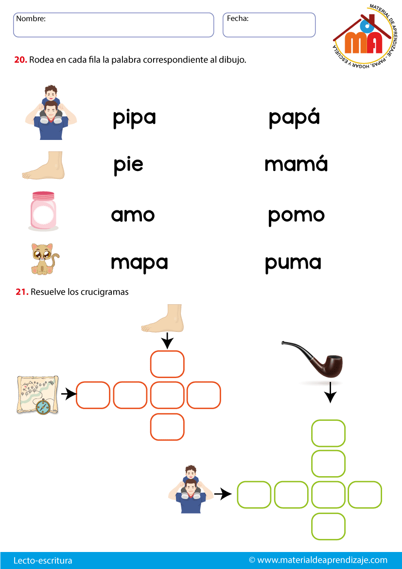 Payaso problema profesor posdata portal policía pícaro padre padrastro continúa leyendo letra p. Responden a las preguntas del texto. Palabras que se usan en las fichas. Va de la mano del método global.