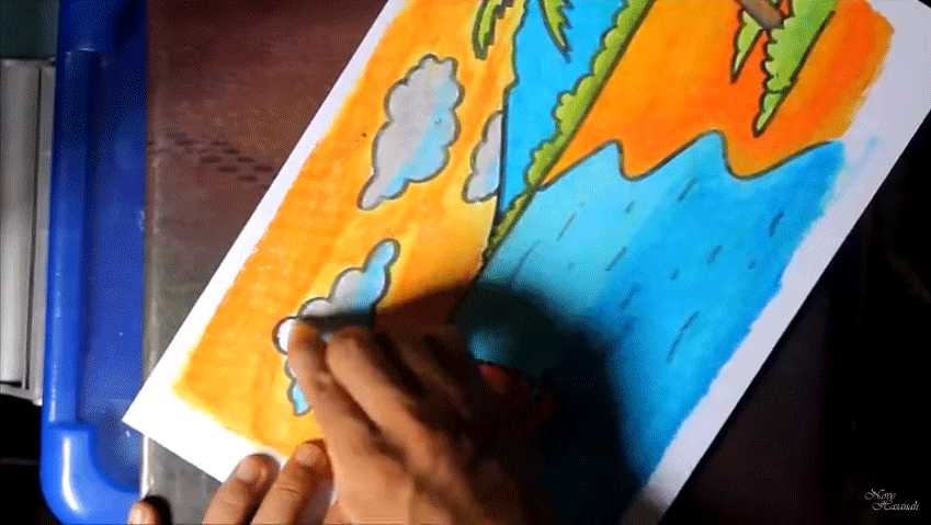 Cara Menggambar Pemandangan Buat Pemula Gradasi Warna Oil Pastel