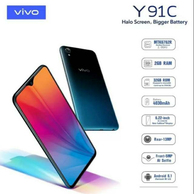 Harga dan spesifikasi vivo y91c ram 2gb rom 32gb terbaru di indonesia tak lama setelah meluncurkan seri y91 2019 vivo indonesia masih terus menggempur pasar low end atau entry level tanah air dengan menghadirkan seri y91c smartphone vivo y91c secara umum masih mengusung desain yang serupa dengan keluarga y91 series lainnya dengan balutan casing polikarbonat dengan finishing glossy dan.
